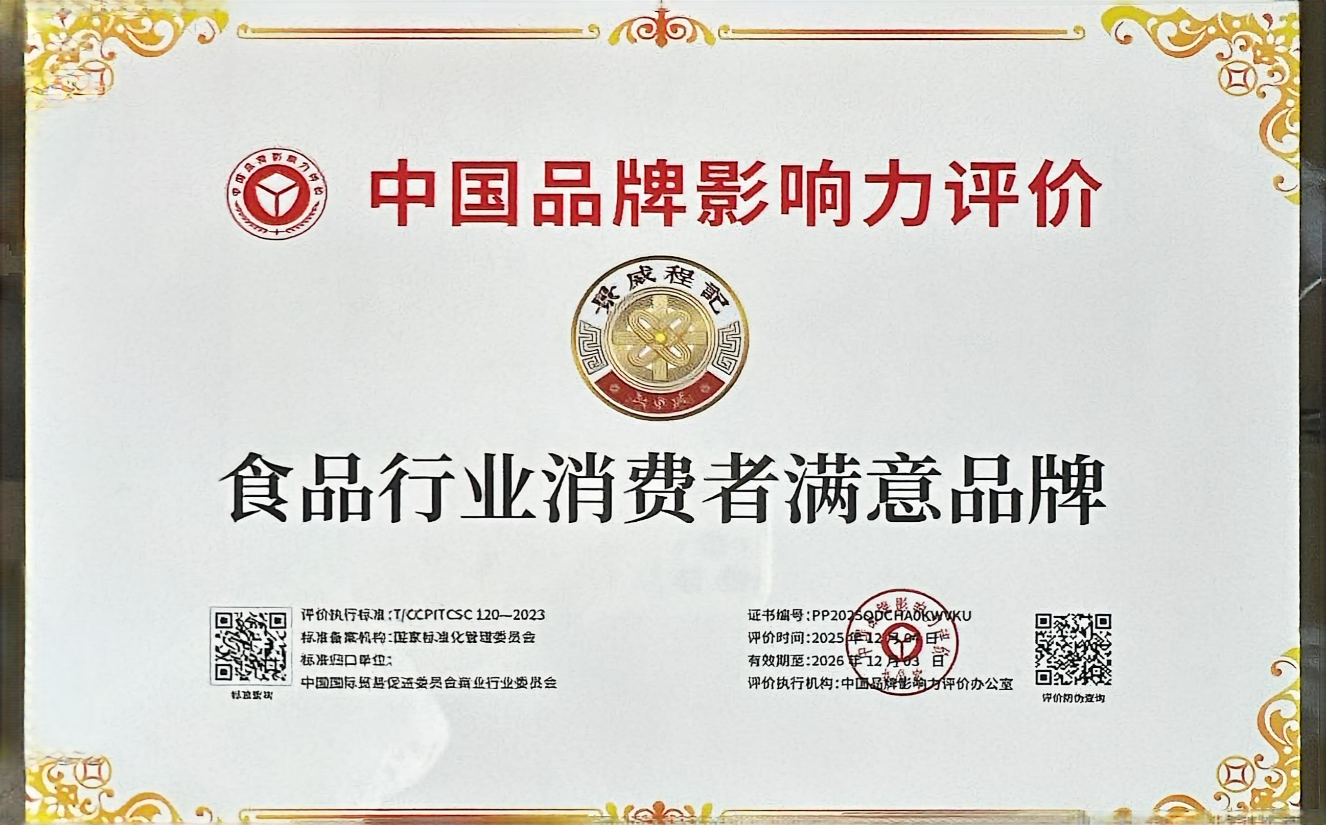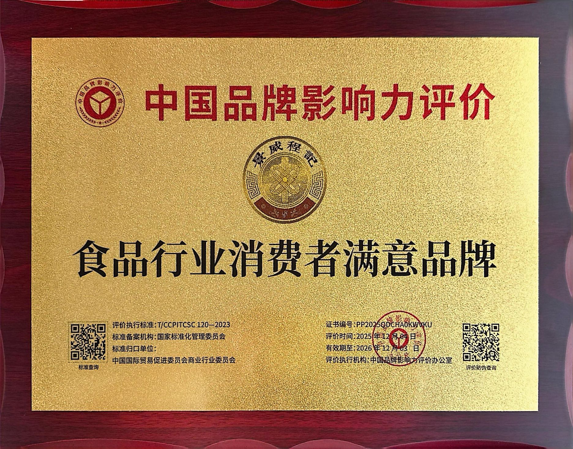 中国品牌影响力评价-食品行业消费者满意品